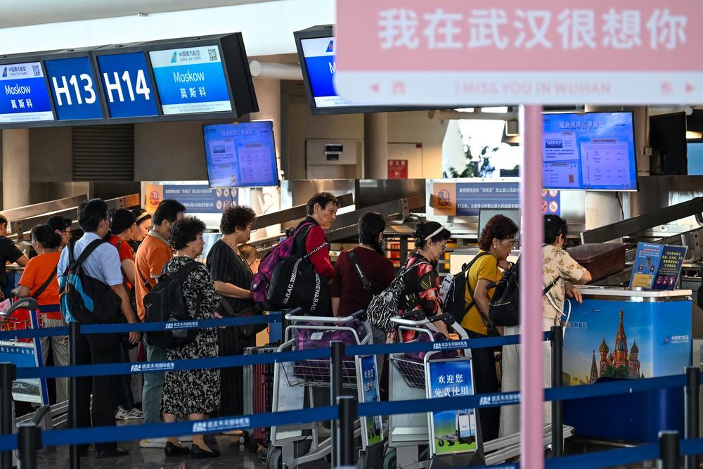 中 후베이 톈허국제공항, 탑승 수속 밟는 관광객