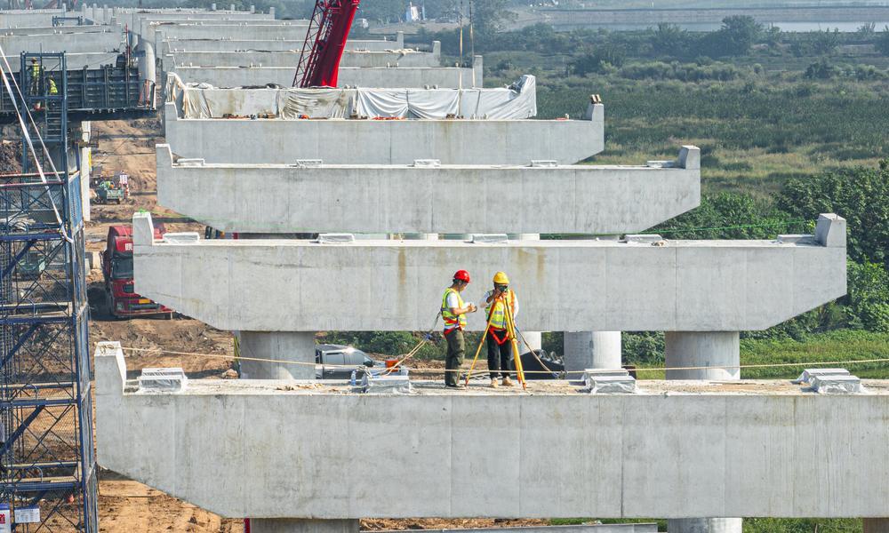 이날 우한(武漢) 도시권 순환고속도로 샤오간(孝感)남(南)구간 건설현장에서 시공에 한창인 중철(中鐵)20국 건설인력을 드론으로 내려다봤다.
